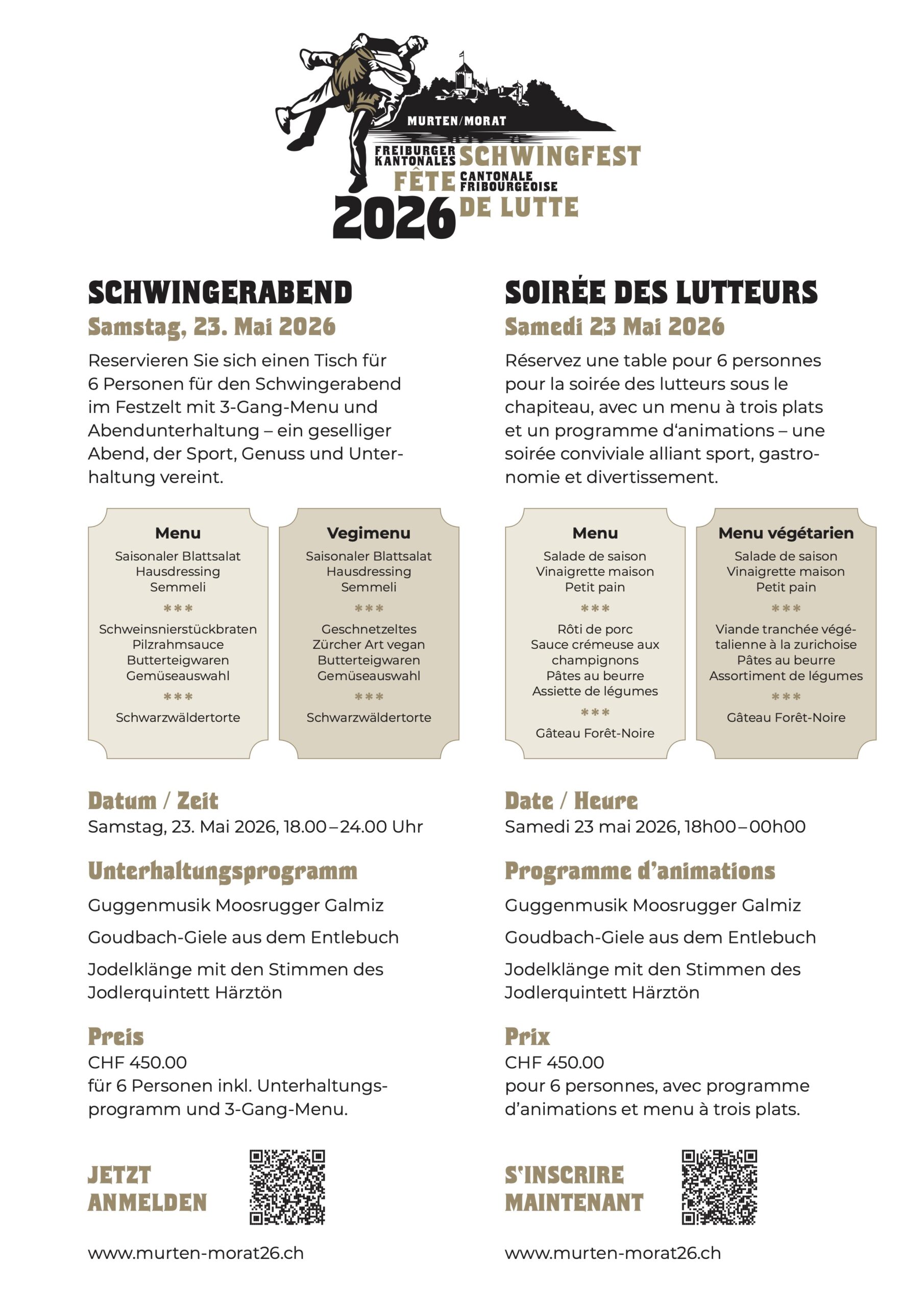 Murten wird damit nicht nur zur Bühne für packende Schwingerduelle, sondern auch zum Schauplatz gelebter Geschichte. Denn im Jahr 2026 jährt sich die Murtenschlacht zum 550. Mal – ein Ereignis, das unsere Region und die Schweiz geprägt hat. Dieses Jubiläum wird am Schwingfest eine besondere Würdigung erfahren und in einem vielseitigen Rahmenprogramm erlebbar gemacht.